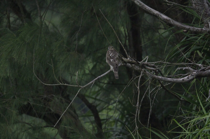 午前中に観察できたミサゴの若鳥。県道沿いのリュウキュウマツにいてカンムリワシがとまりそうな場所です。