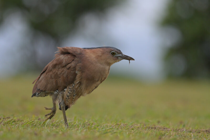 偶然出会えたズグロミゾゴイの幼鳥。ほほから首にかけてわずかに成長羽に生え変わっています。