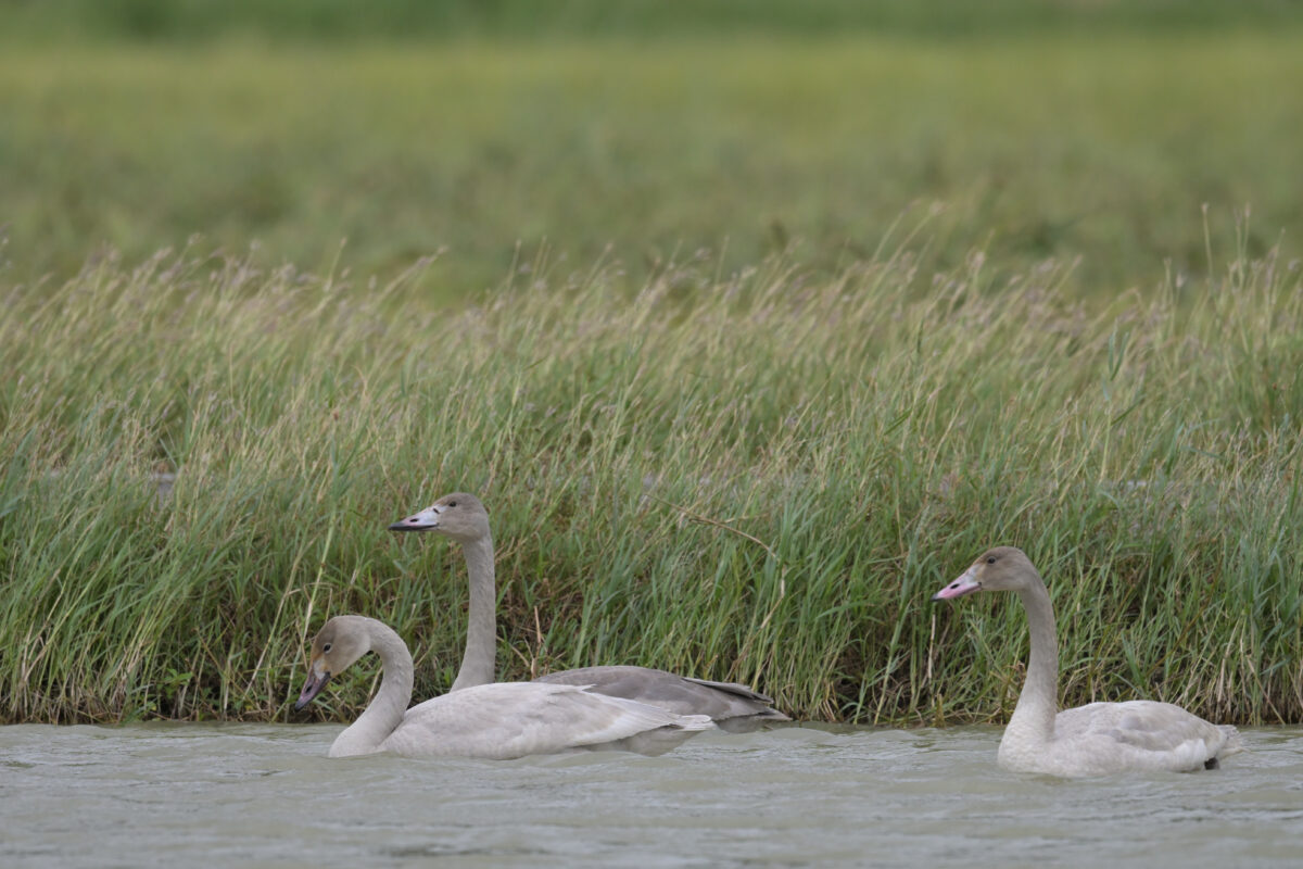 ソデグロヅルがコハクチョウを連れて戻ってきた!